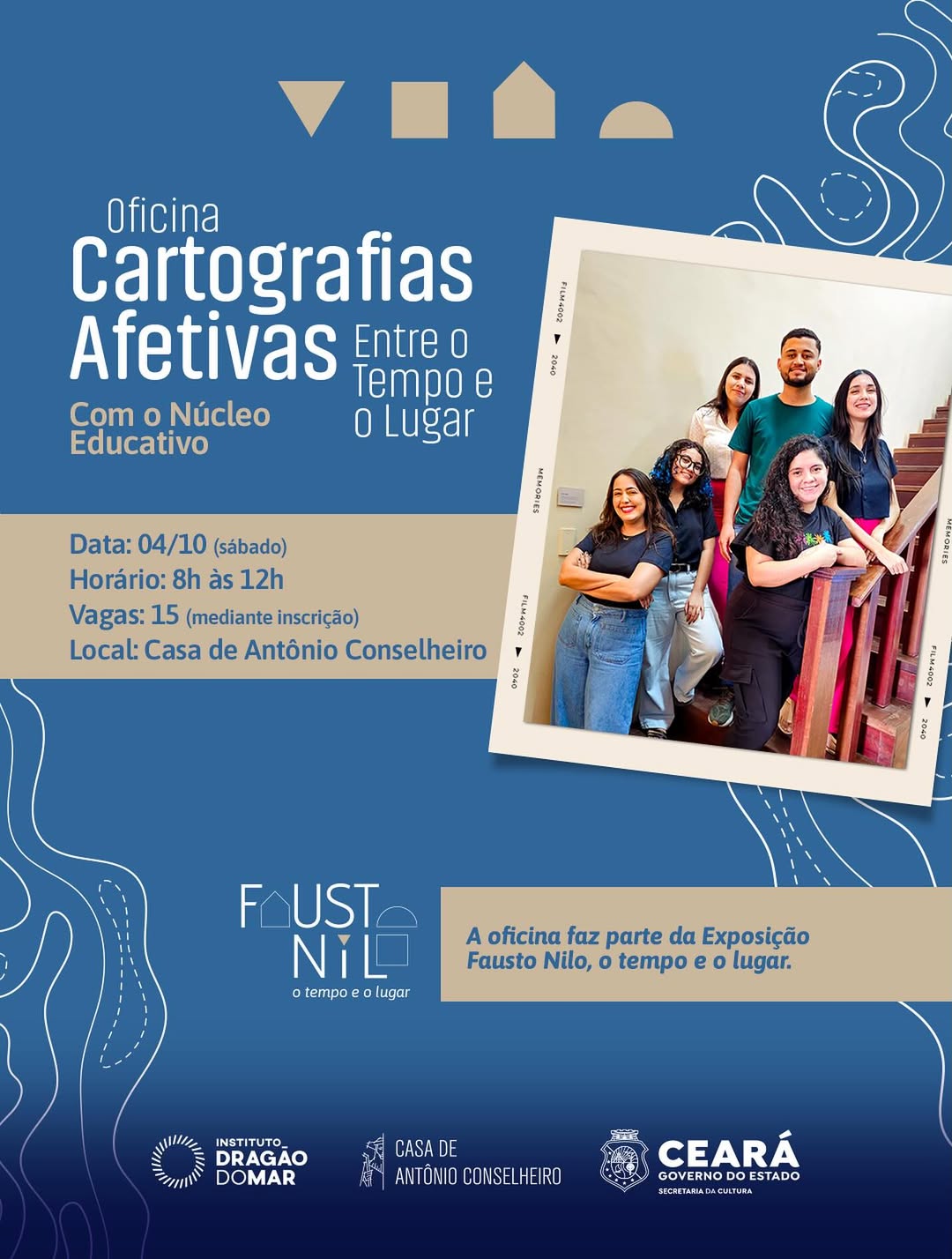 Casa de Antônio ConselheiroA Casa de Antônio Conselheiro realiza, no dia 04 de outubro (sábado), das 8h às 12h, a oficina “Entre o Tempo e o Lugar”, conduzida pelo Núcleo Educativo. A atividade...